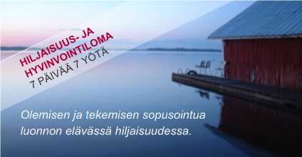 Kaavinkosken Hiljaisuuden kylä Suur-Saimaan hiljaisilla ja kalaisilla latvavesillä suo hyvinvointiloman, jossa yhdistyvät rauhallinen mökki- ja rantaloma sekä olemisen ja tekemisen sopusointu luonnon elävässä hiljaisuudessa.