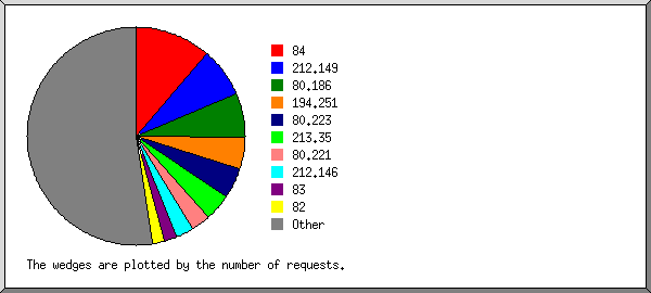 week beg.: #pages: #reqs: Mbytes: ---------: ------: -----: ------: Dec/ 7/03: 1115: 4613: 25.53:Busiest week: week beginning Jun/26/05 (6,614 requests for pages).Dec/14/03: 599: 2039: 14.30: